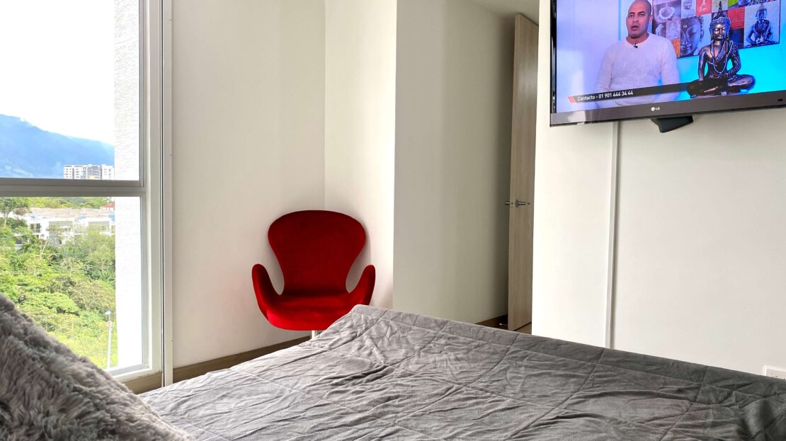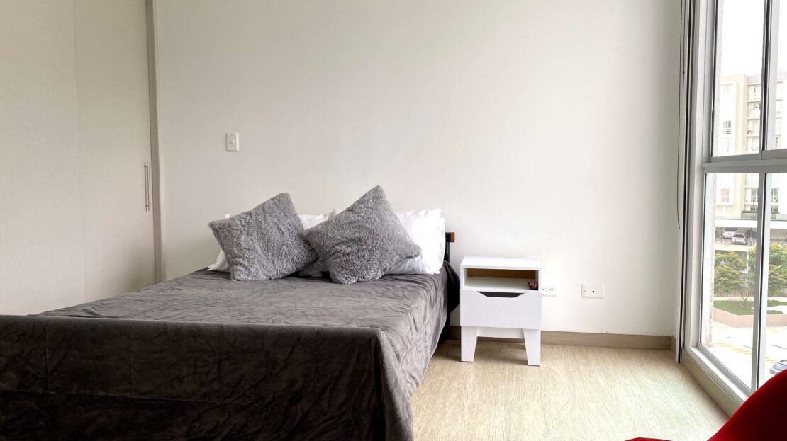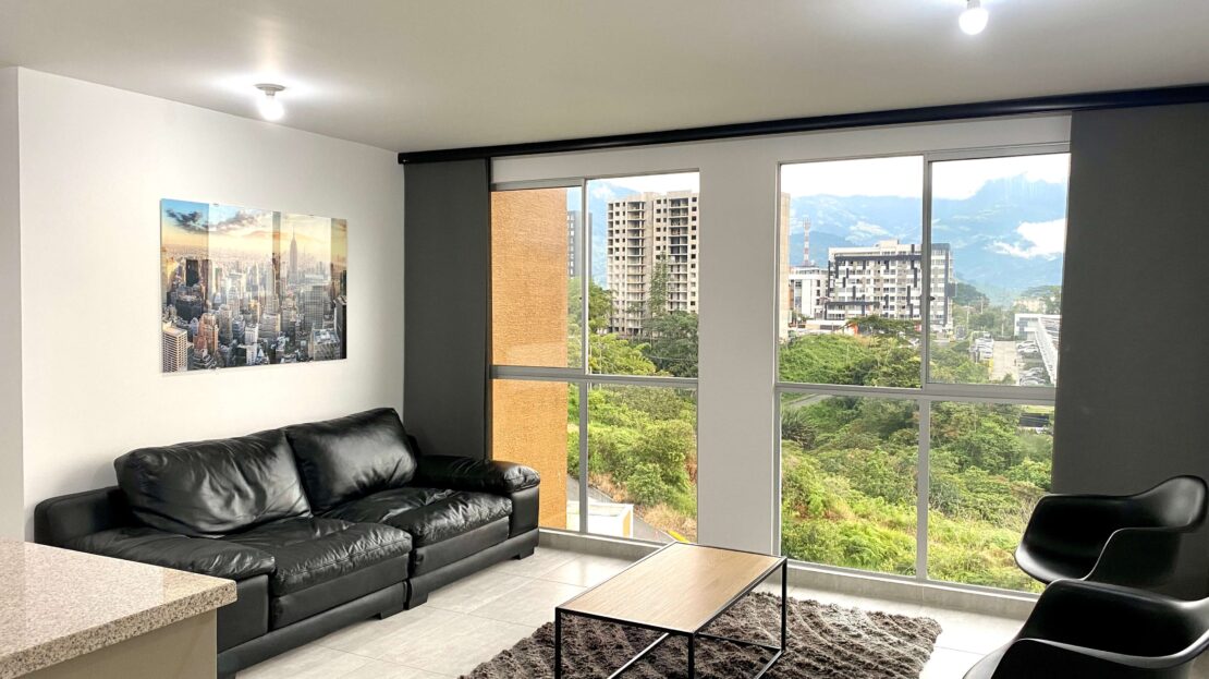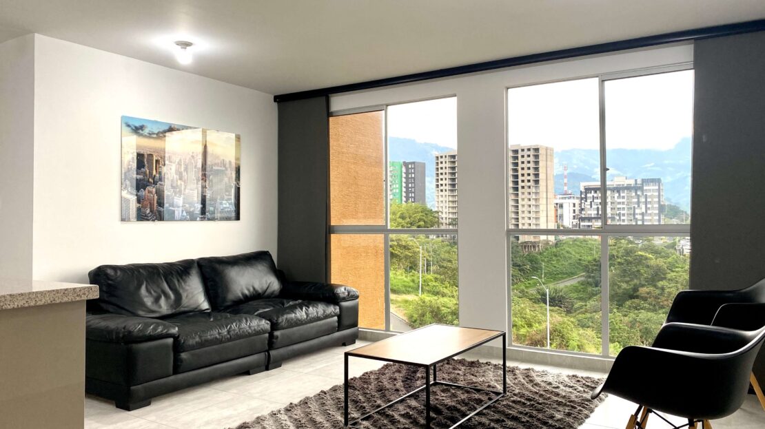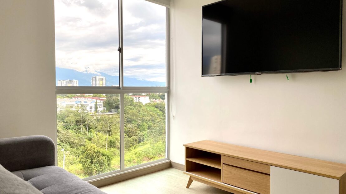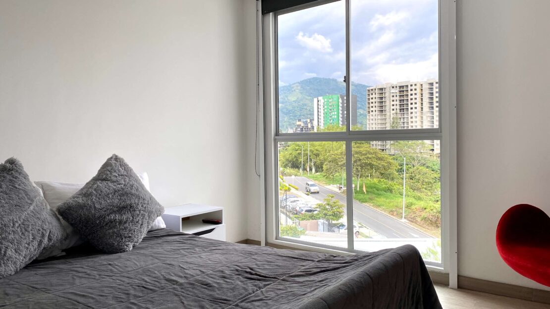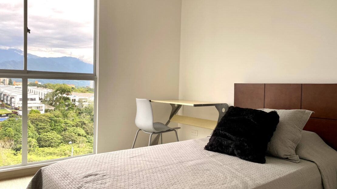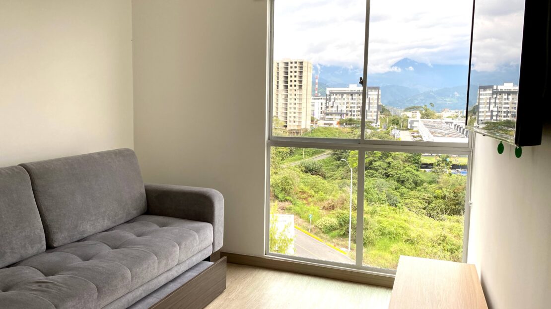 Apartamento Amoblado en Alquiler – Armenia de 3 habitaciones, 2 baños, sala comedor, cocina integral, zona de ropas, 1 parqueadero cubierto, 84 mts2, piso 7, capacidad máxima de 4 personas en acomodación doble, magnifica vista a la montaña.