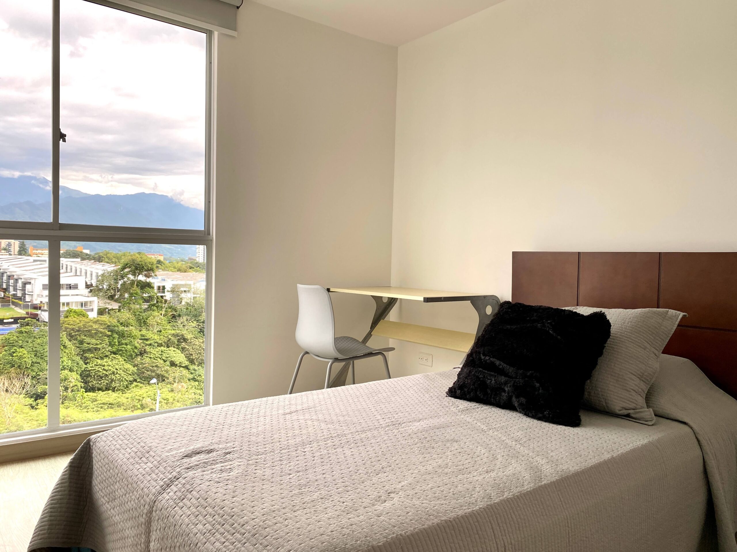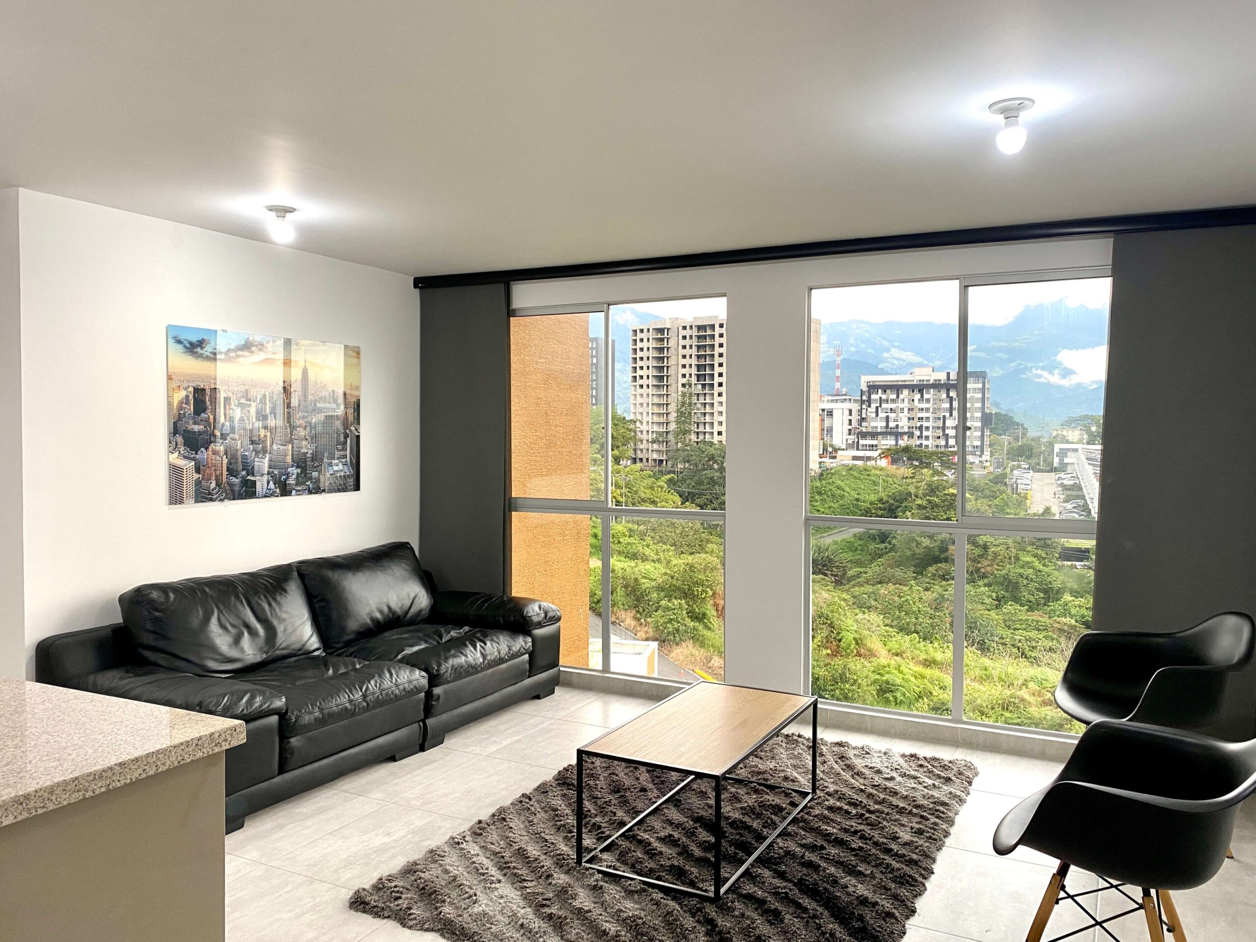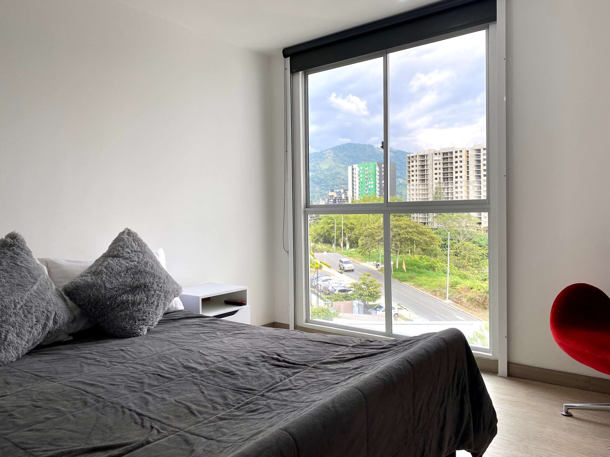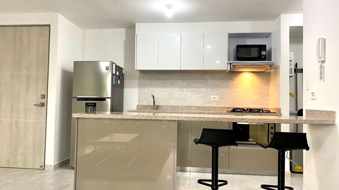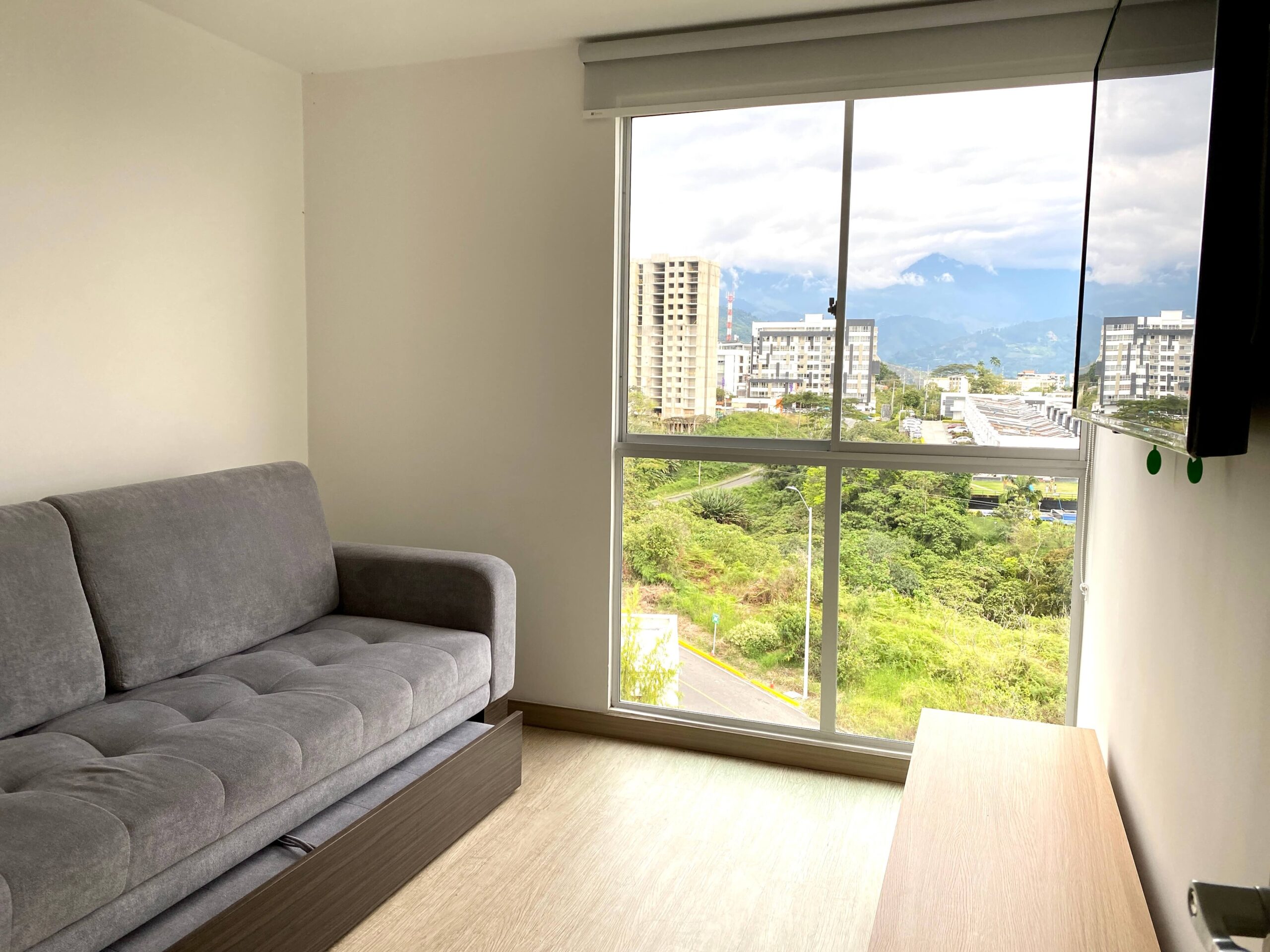 Apartamento Amoblado en Alquiler – Armenia de 3 habitaciones, 2 baños, sala comedor, cocina integral, zona de ropas, 1 parqueadero cubierto, 84 mts2, piso 7, capacidad máxima de 4 personas en acomodación doble, magnifica vista a la montaña.
