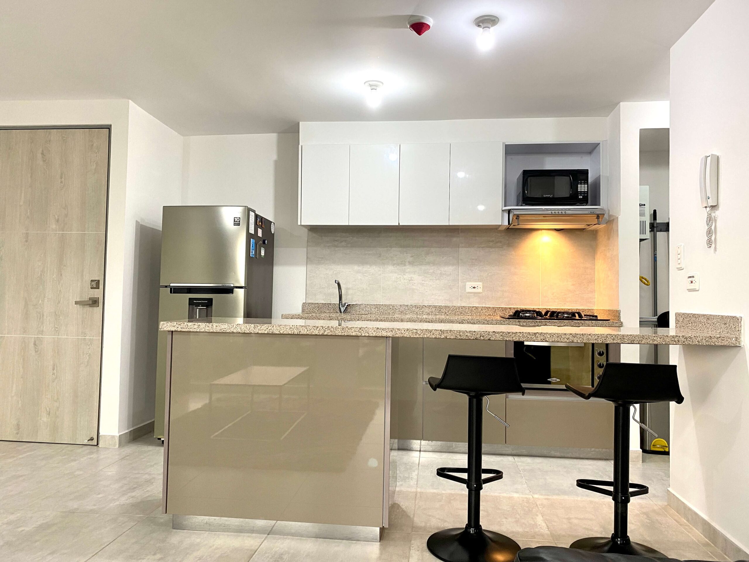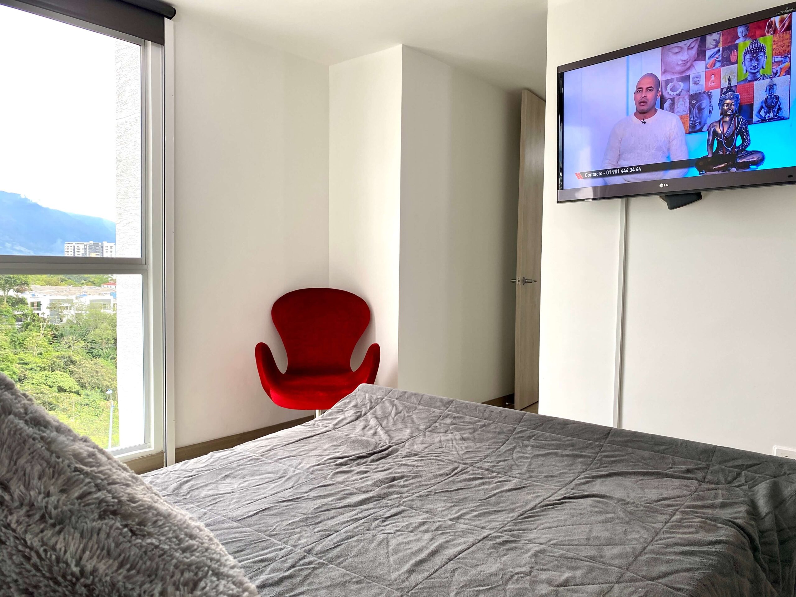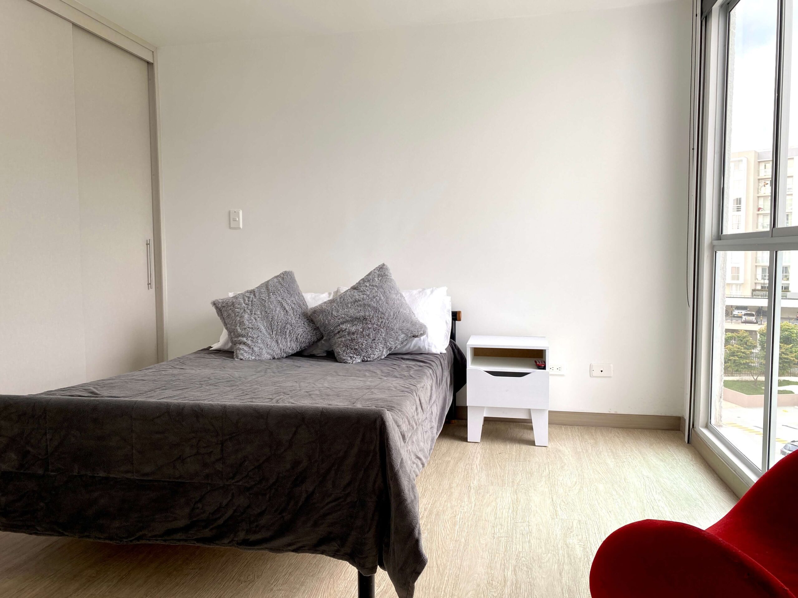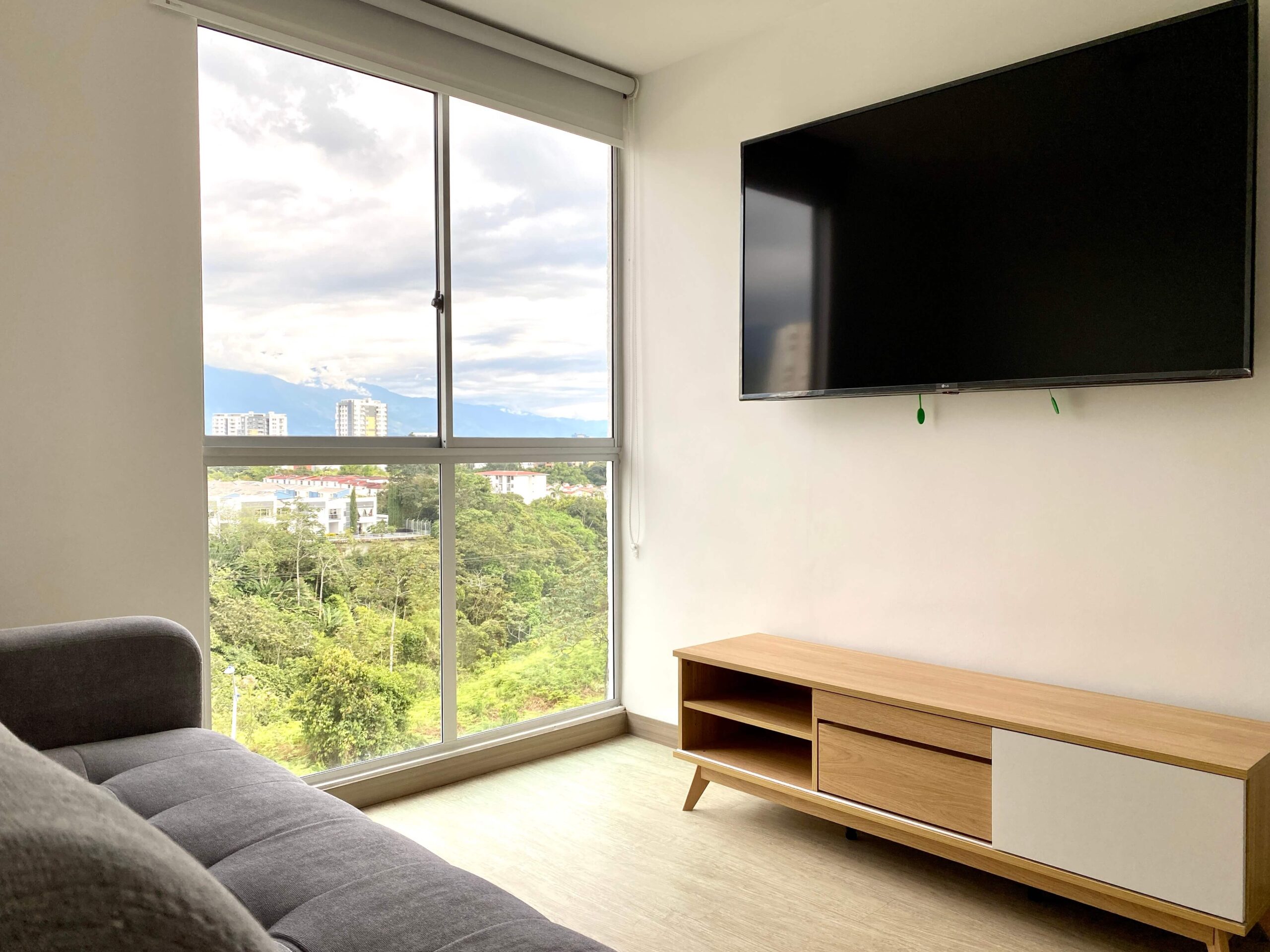 Apartamento Amoblado en Alquiler – Armenia de 3 habitaciones, 2 baños, sala comedor, cocina integral, zona de ropas, 1 parqueadero cubierto, 84 mts2, piso 7, capacidad máxima de 4 personas en acomodación doble, magnifica vista a la montaña.