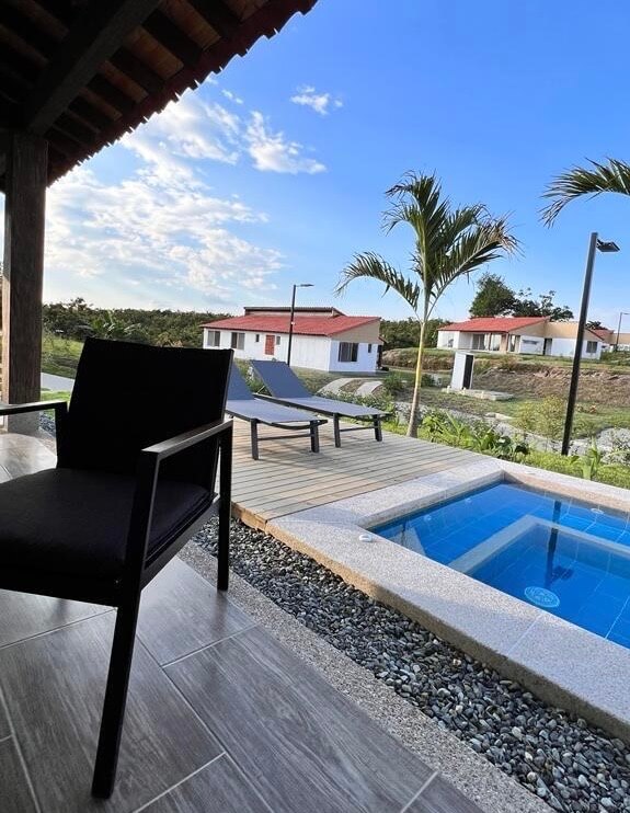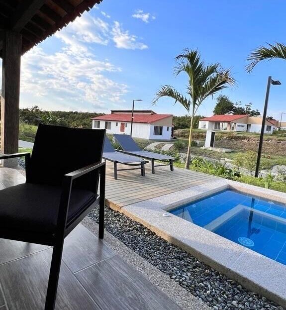 Exclusiva casa campestre amoblada en Armenia en alquiler, ubicada en el sector de El Caimo, ideal para quienes buscan amplitud, privacidad y contacto con la naturaleza sin renunciar al confort. La propiedad cuenta con 140 m², construidos en un solo nivel, con espacios amplios y perfectamente distribuidos para garantizar comodidad y funcionalidad. Dispone de 3 habitaciones amplias, cada una con baño privado, sala comedor con baño social, moderna cocina integral, jacuzzi privado con solárium, estadero al aire libre y 2 parqueaderos. Capacidad máxima para 6 personas en acomodación doble, ideal para familias o estancias ejecutivas de alto nivel.